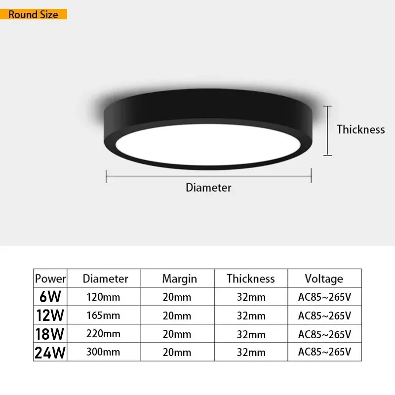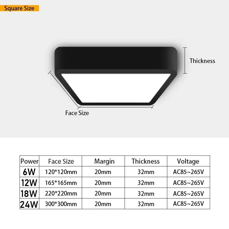 Quadrado redondo convertido a luz do painel lâmpadas de teto 6w/9w/12w/18w/24w s